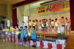 勇壮な田迎太鼓に始まり、1・2年生児童による「おじいちゃん・おばあちゃん」への