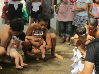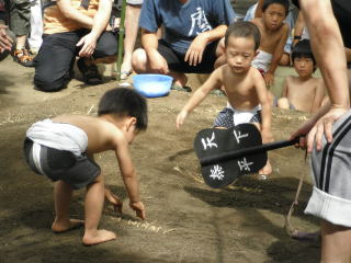 も伝統ある田迎神社奉納子ども宮相撲大会が開催されました。 まず始めに、赤ちゃん奉納相撲が行われました。高学年のお兄さんたちが恐る恐 る赤ちゃん達を抱っこしている姿を見ている私達もちょっとドキドキしましたが、無 事に終わり安心しました。 そして、勇ましい子どもたちの相撲が始まりました。男の子たちは腰にまわしを付 け、いつになく表情が真剣でした。行司さんのリードと共に「ガンバレー!」と大き な声援を受けた子どもたち、大いに盛り上がりました。 このような素晴らしい経験をさせてもらい、子どもたちも楽しいひとときを過ごし たことだと思います。 年に一度の大会ではありますが、早朝から手際よく土俵作りにご協力頂いた消防 団の皆さん、また、いろいろご指導頂きました地域の皆さん有難うございました。 宮相撲大会は、後世に伝えていきたい大切な伝統行事のひとつです。 (1・5町内子ども会) ![]() |