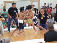 | 子ども達の健やかな成長と健康祈願を目的に行われた。 今回は雨天のため公民館の室内での開催となった。 参加者:小学校6年生までの男女(未就学子ども可) ・赤ちゃん土俵入り ・低学年(1年生〜3年生) ・高学年(4年生〜6年生) ・5人抜き戦 ![]() |