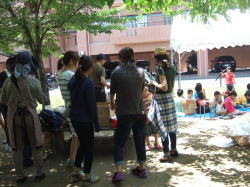 | 平成27年5月10日(日)にお見知り会をしました。 参加した新1年生の自己紹介!その後読み聞かせとゲームを楽しみました。 ![]() ![]() |