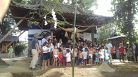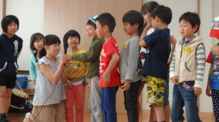 | 2017年4月22日にお見知り会をしました。今年は、1年生15名が 加入してくれ、3町内子ども会は全員で61名となりました。 ジェスチャーゲーム、じゃんけん列車、ビンゴゲームをしたり、みんなで おやつを食べたりと、とても楽しく過ごせました。緊張気味だった1年生も、 少しずつ笑顔になってくれました。 |