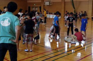 | 2017年5月14日(日)新入会の会員を歓迎して、「お見知り会」を 開催しました。 学年に関係なくグループとなって「しっぽ取りゲーム」や「フラフープリレー」 等々、思いっきり体を動かし遊びました。 ![]() |
