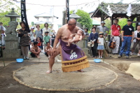 | 2017年9月3日(日)午前10時から、健やかな成長と健康を祈願して 田迎神社で、10名の赤ちゃんの土俵入り ・ 100名による子ども宮相撲、 総勢300名で宮相撲大会が行われました。 |