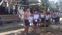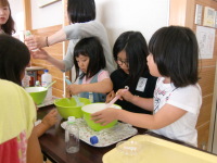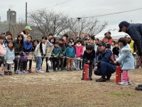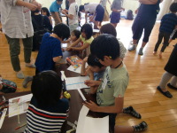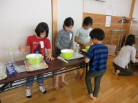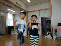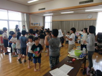 手遊び、じゃんけん大会、紙とんぼ作り、プラ板作りをしました。