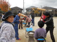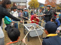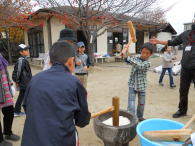 (まちづくり委員会はじめ各種団体協力) 《参加者》 小学生200名 幼児・地域住民100名 指導・お手伝い80名 ◎餅つき・あん餅づくり・・まちづくり委員会・おやじの会・女性の会・民児委員会 ◎ダンボール遊び(ダンボール箱に絵を書く・戦車ごっこ・住居づくり) ・・・体協・防犯協会・交通安全協会・消防団 ◎パン焼き・・・・・・・・・・・・・・田迎小PTA・子ども会 ◎竹を使った遊び(竹馬・竹トンボ・竹笛・缶下駄・水鉄砲) ・・・老人連合会・社協・校区公民館長 |