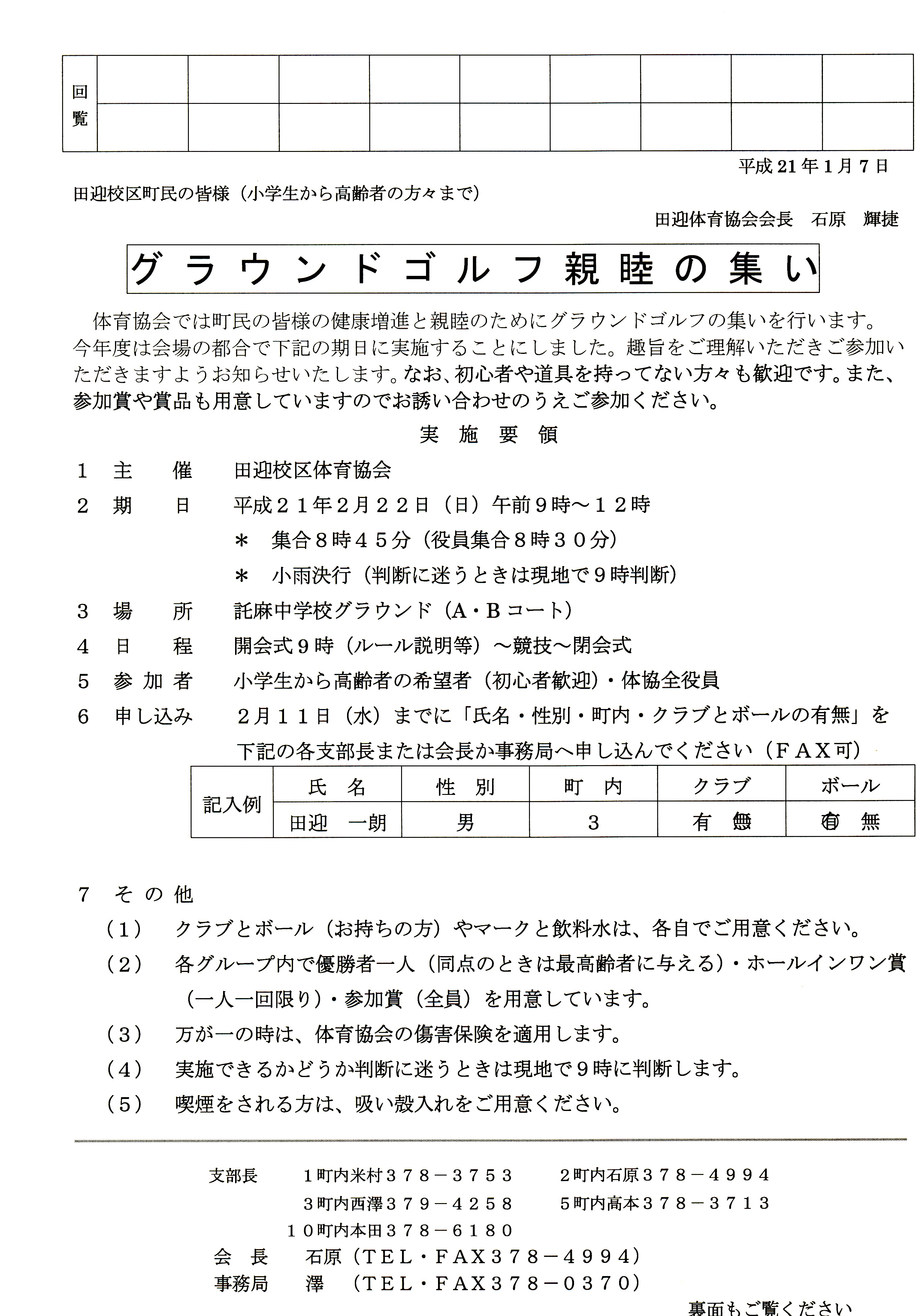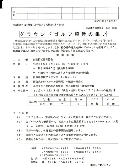 平成22年度 田迎校区体育協会の目標について
