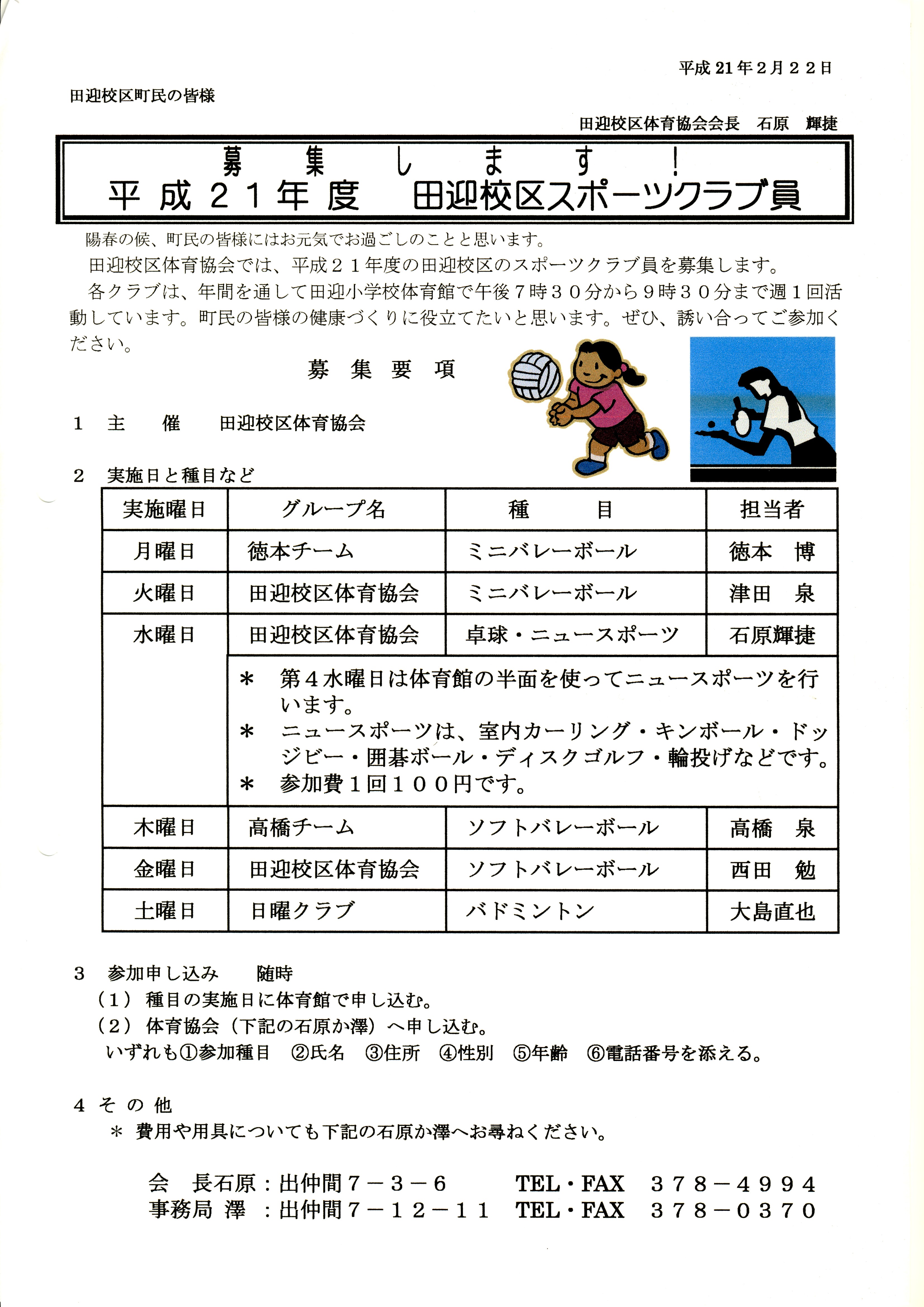 (1) 各種団体と連携して体育協会の活動を行い、明るい町づくりに寄与する