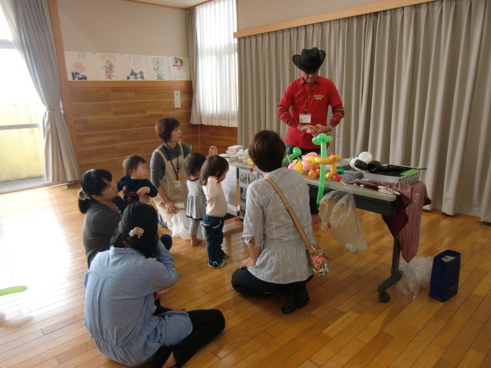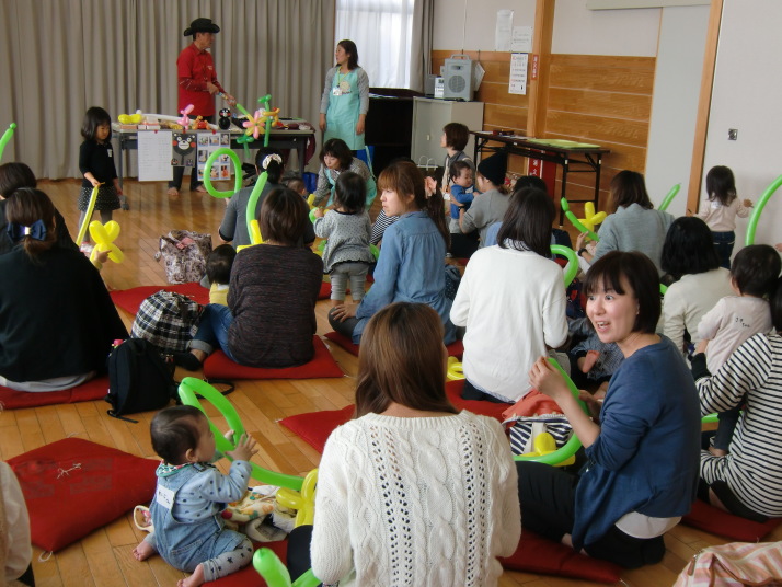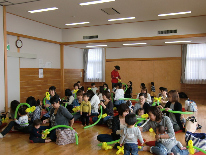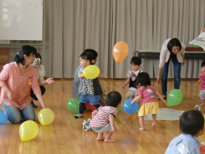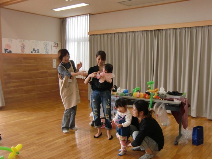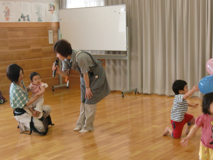 地域の高齢者の方々と一緒に歌を歌ったり、タッチ遊びや風船遊びをして過ごしました。