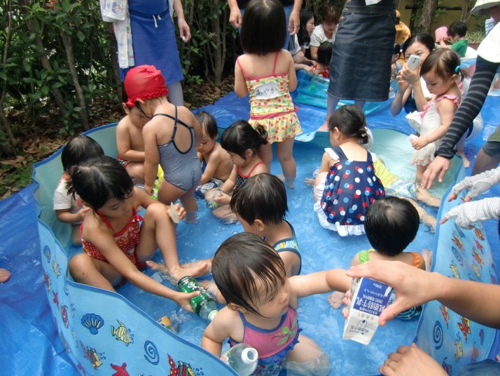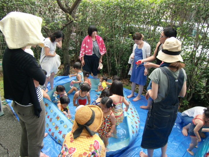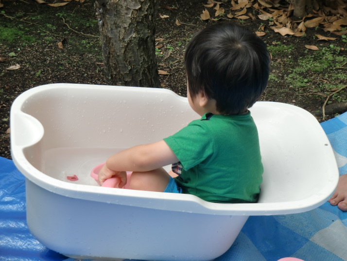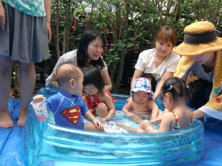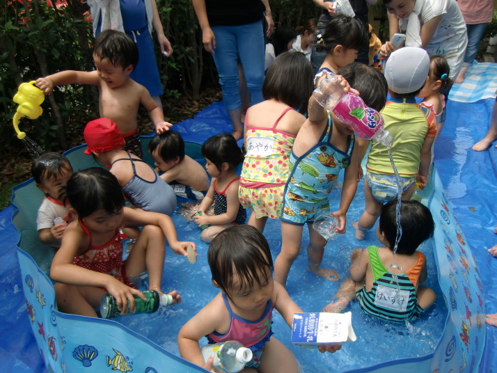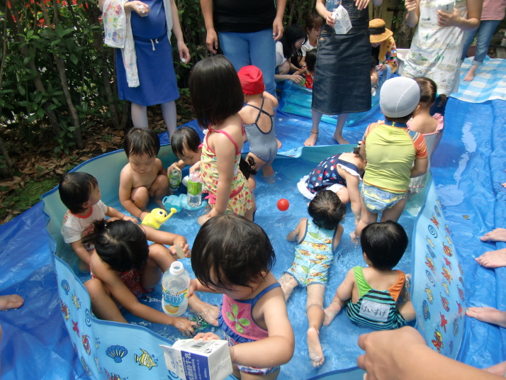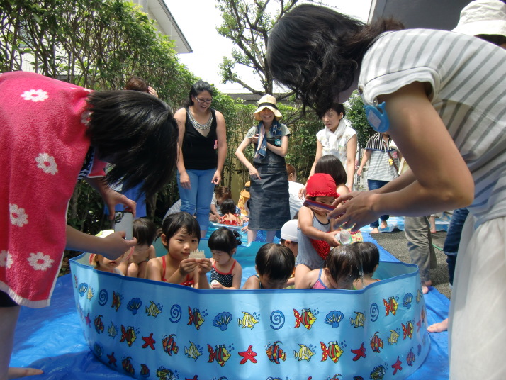 家ではできない広いプールで水遊びができて、子ども達は楽しそうでした。