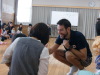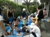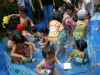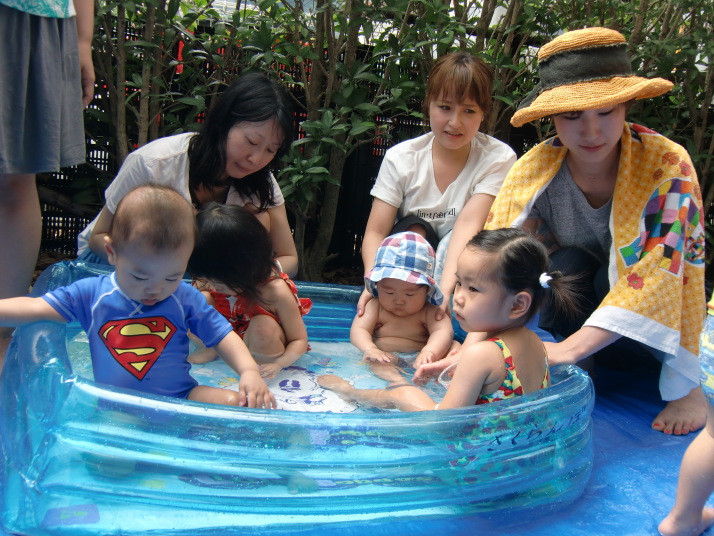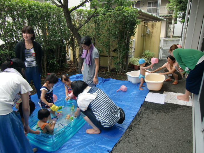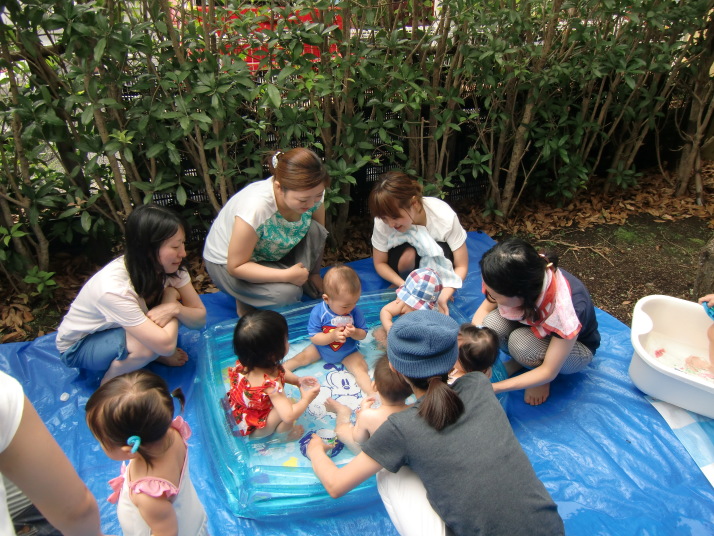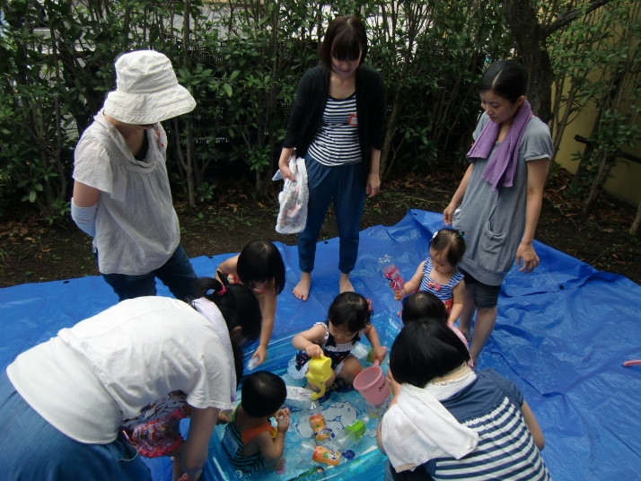 絵本の読み聞かせの後、水遊びと座談会の2つのグループに分かれて交流しました。