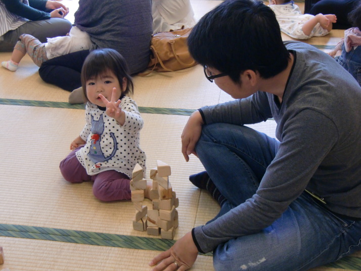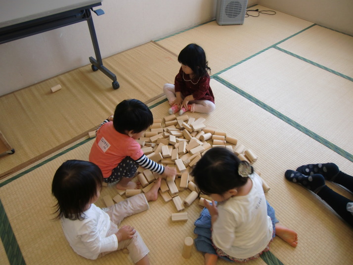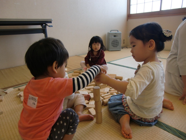 今日は絵本、紙芝居、積木をして遊びました。みんな楽しく積み木で遊んで木の温もりを感じていました。