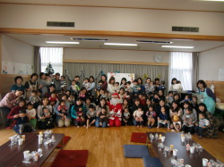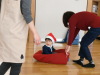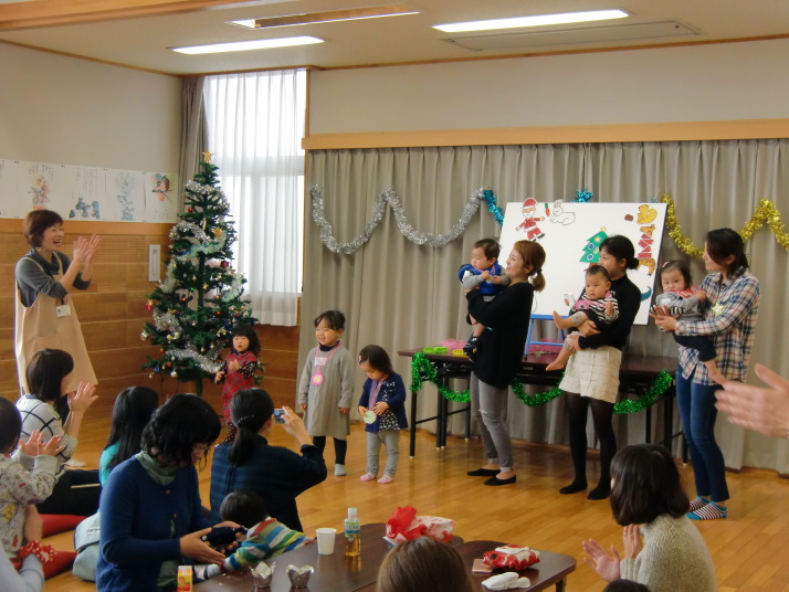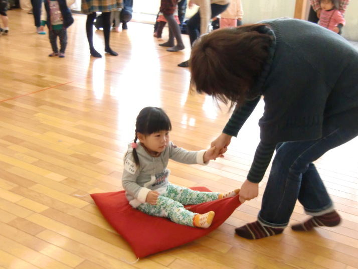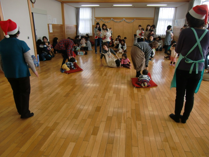 今日は楽しいクリスマス会。音楽に合わせて体を動かしたり、座布団運び競争で盛り上がったり、