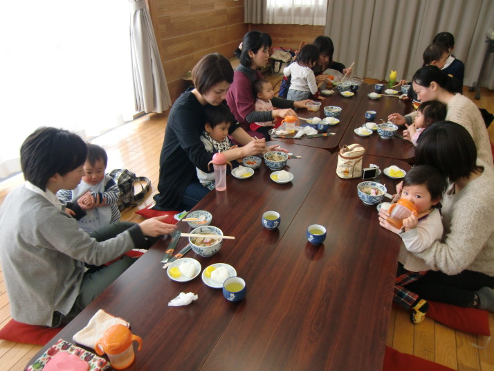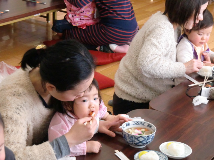 たくさん遊んだ後は、皆さんでだご汁とおにぎりを頂きます。