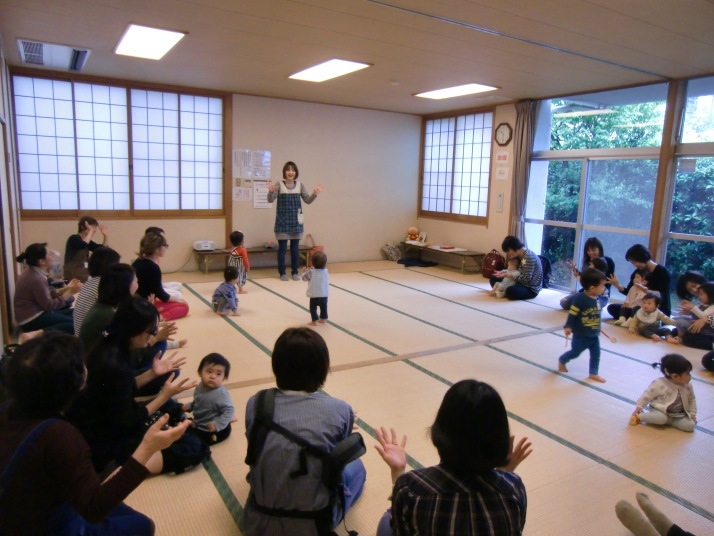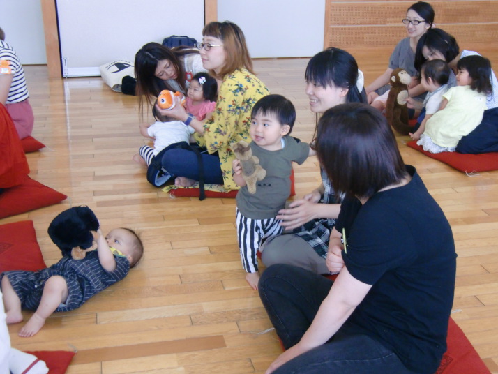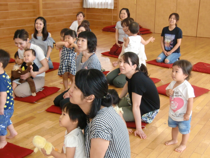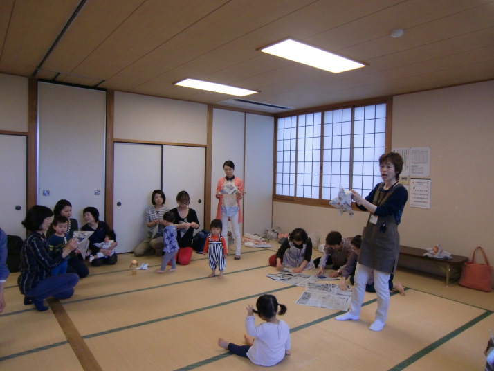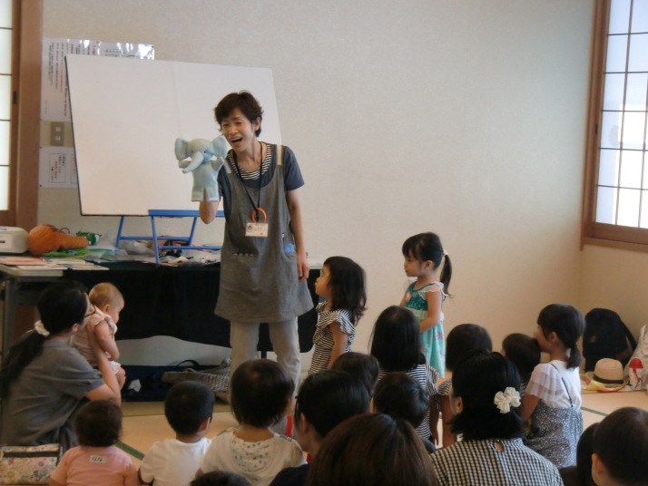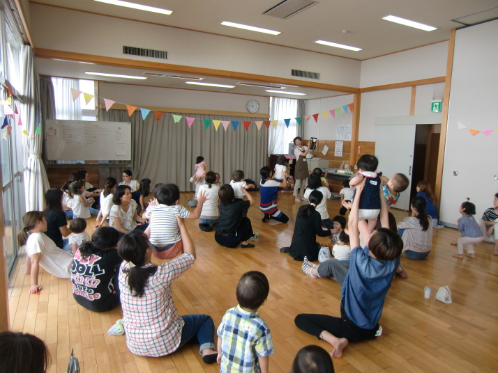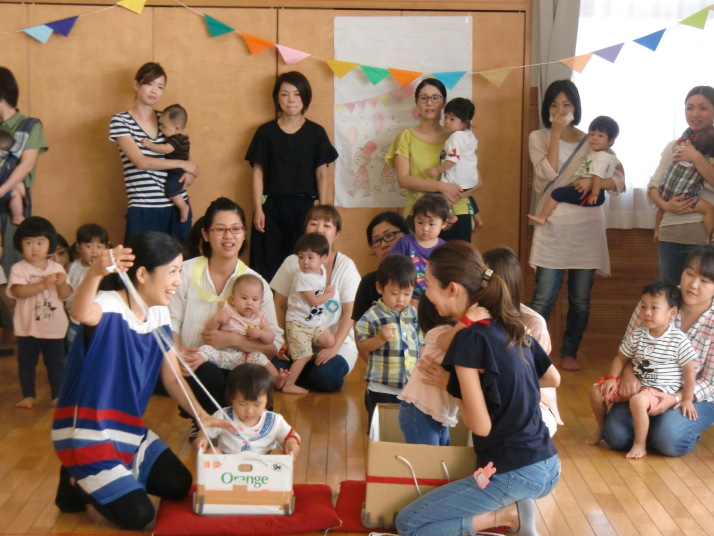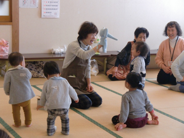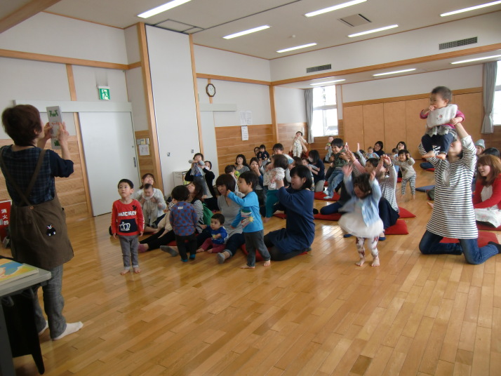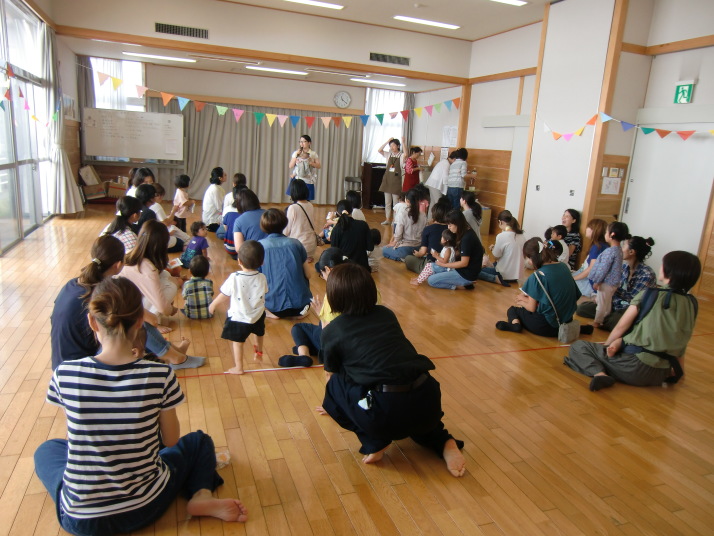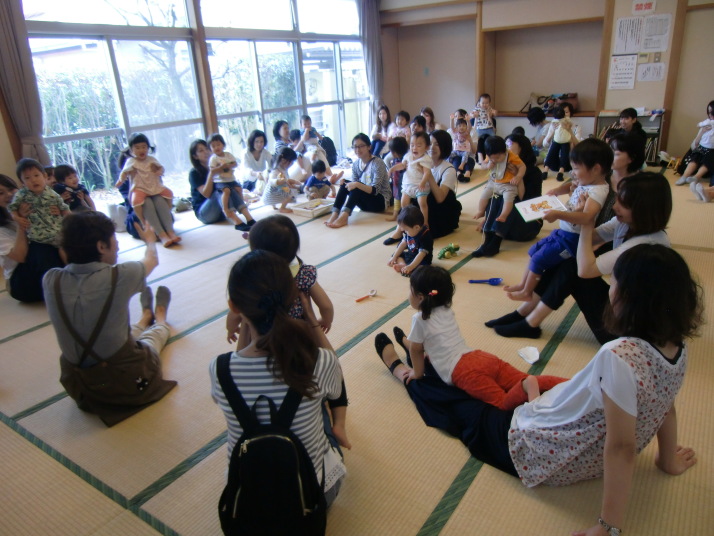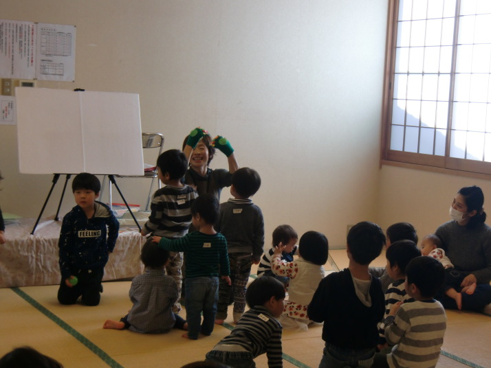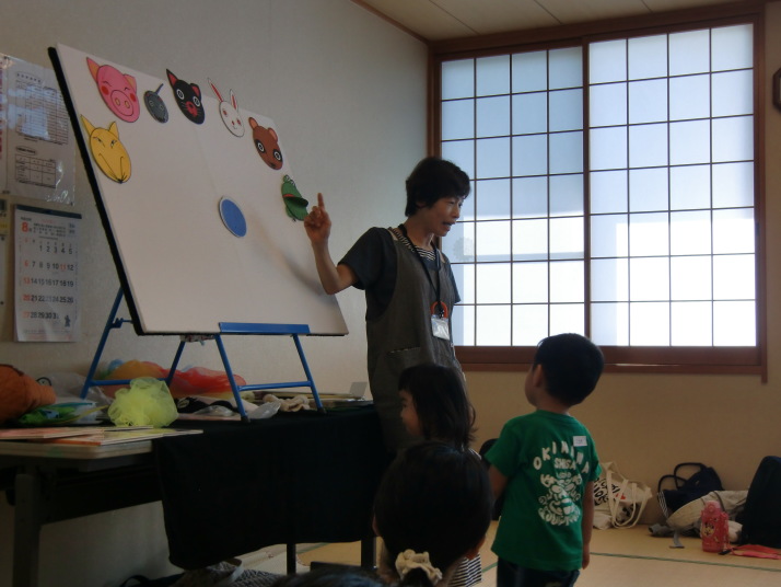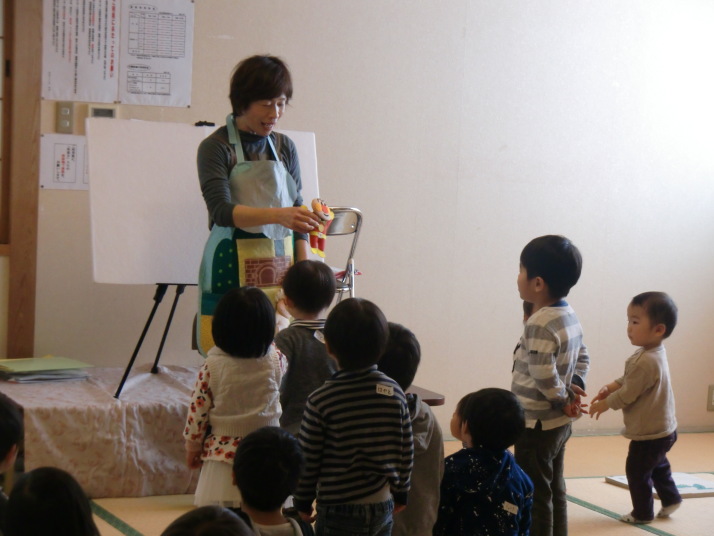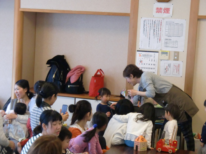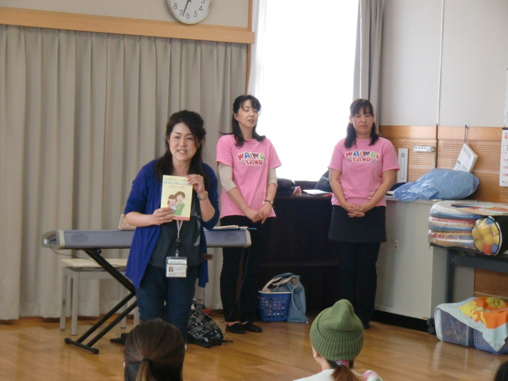 紙芝居や絵本の読み聞かせを聞いたり、手遊びをしたり、みんなで自己紹介を