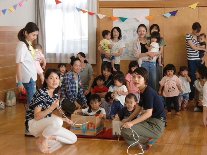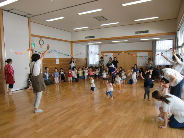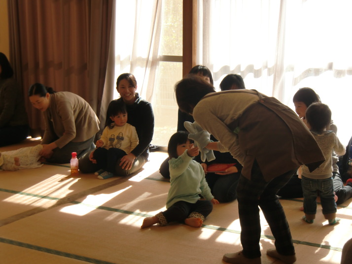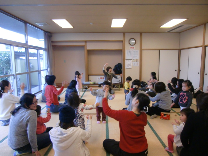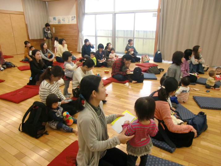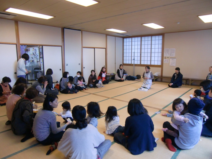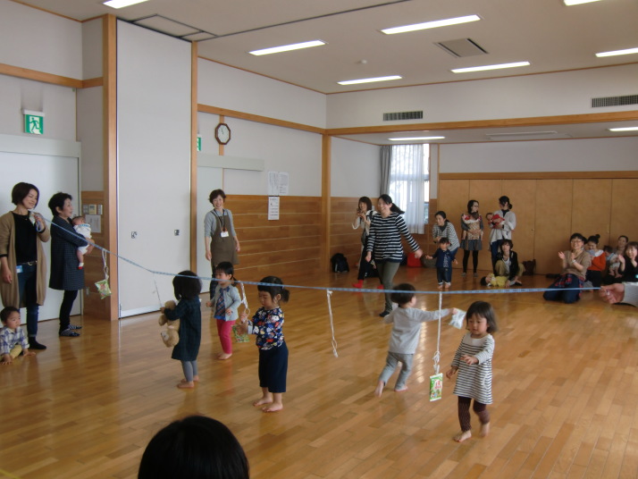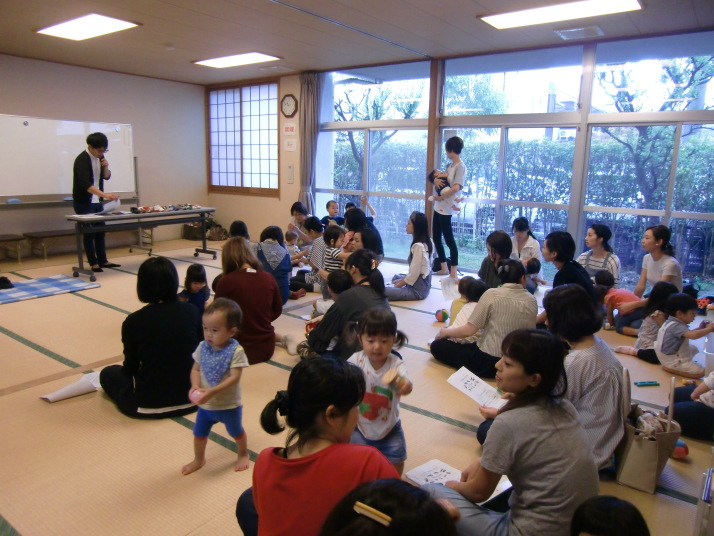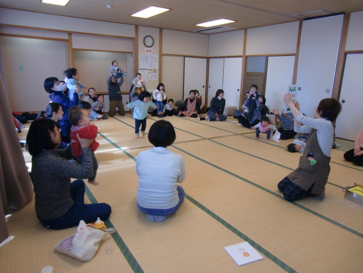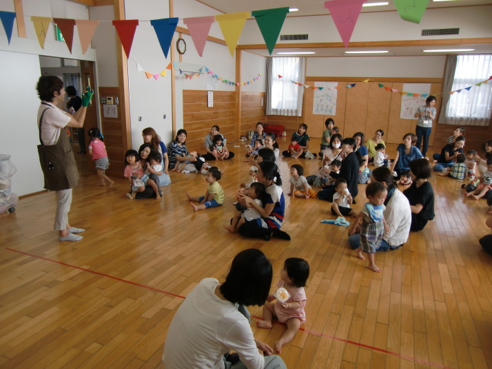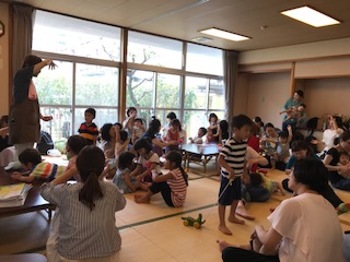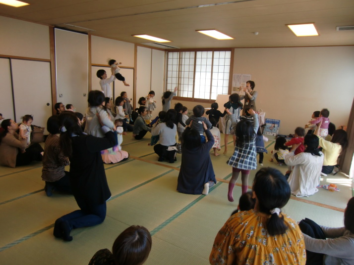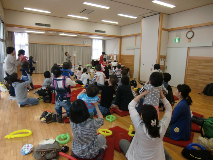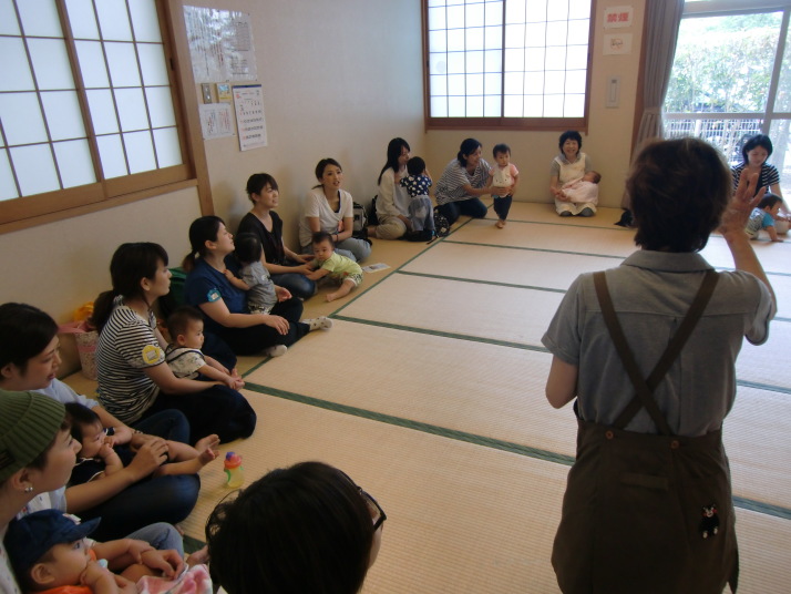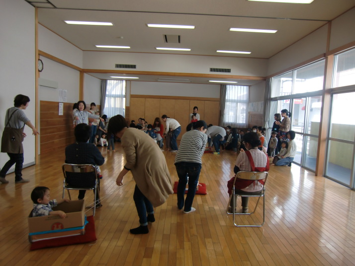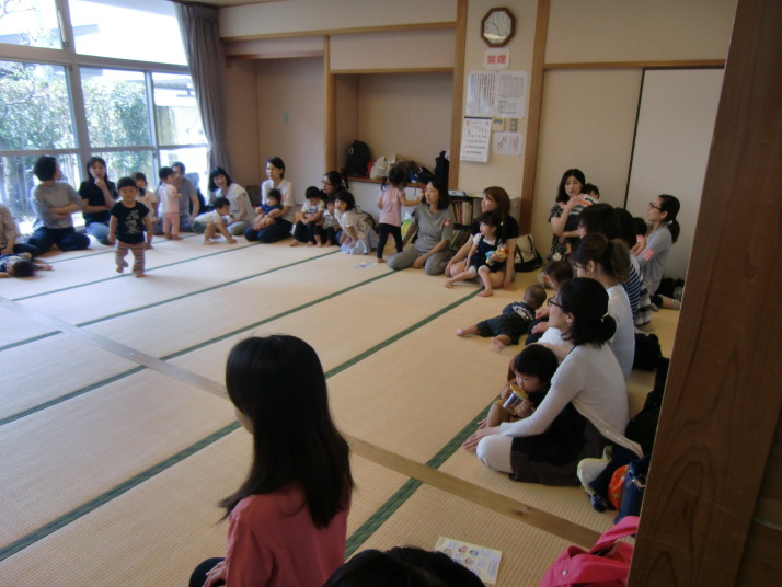 紙芝居や絵本の読み聞かせを聞いたり、手遊びをしたり、みんなで自己紹介を