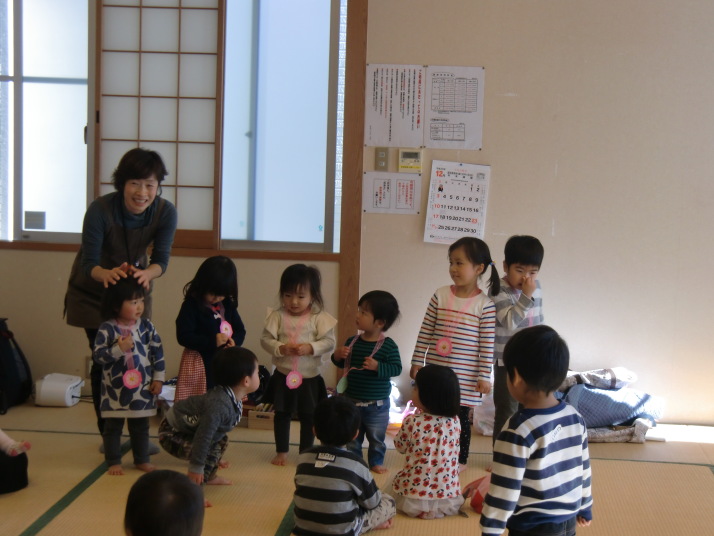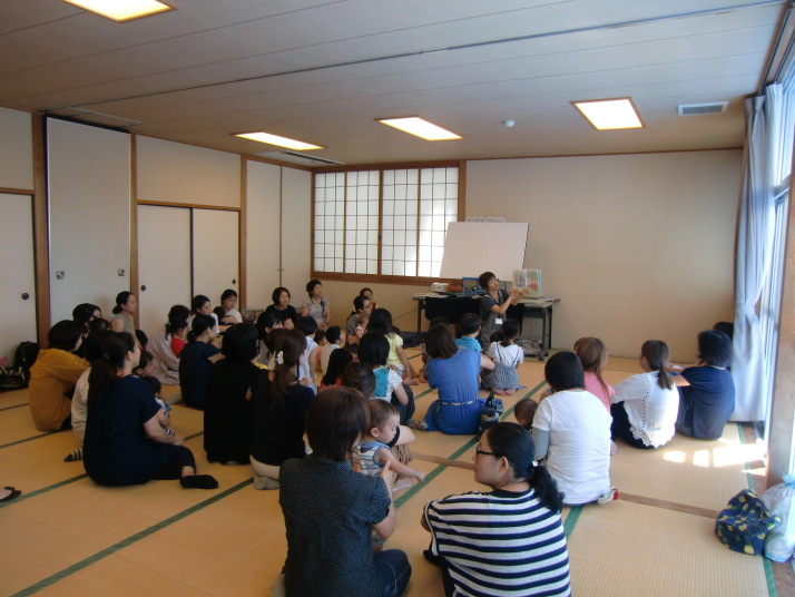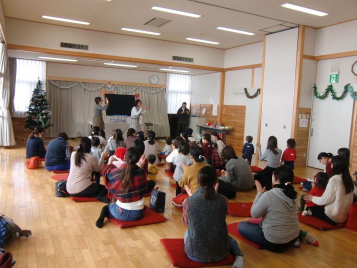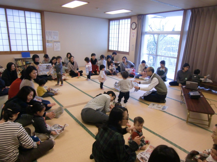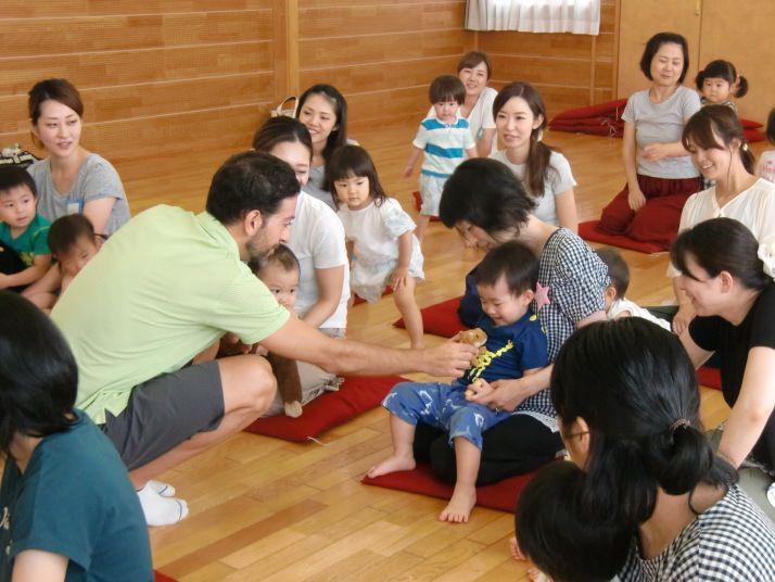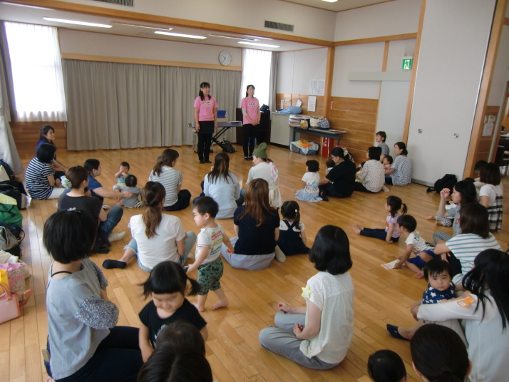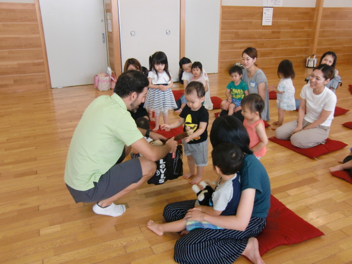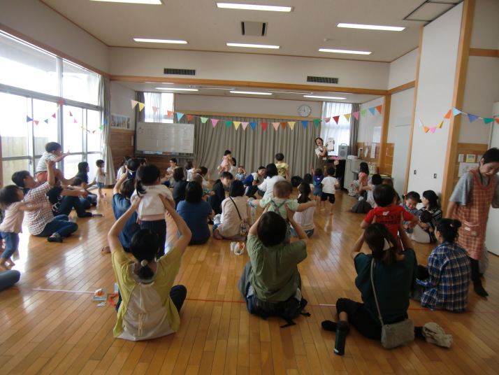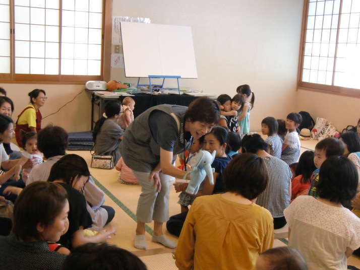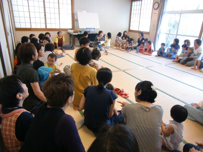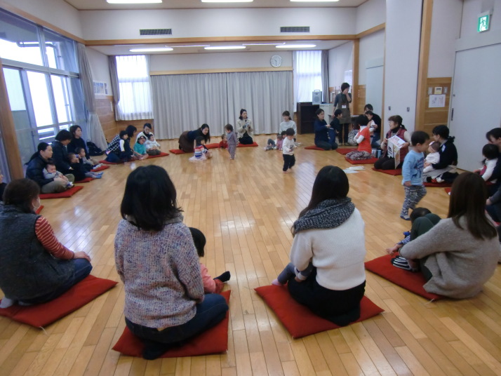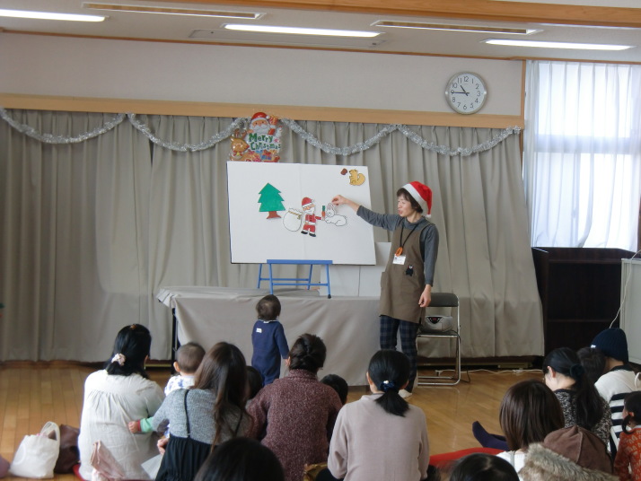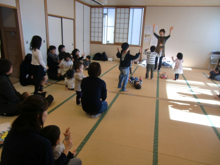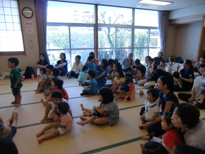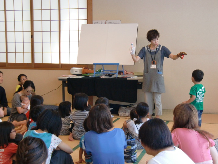 紙芝居や絵本の読み聞かせを聞いたり、手遊びをしたり、みんなで自己紹介を