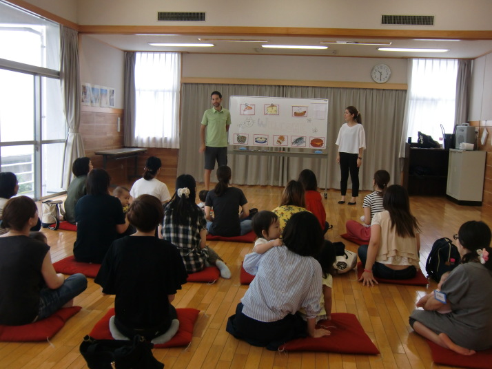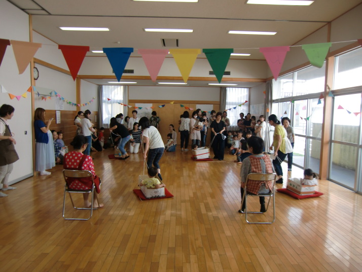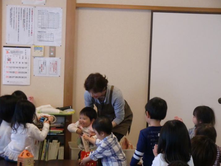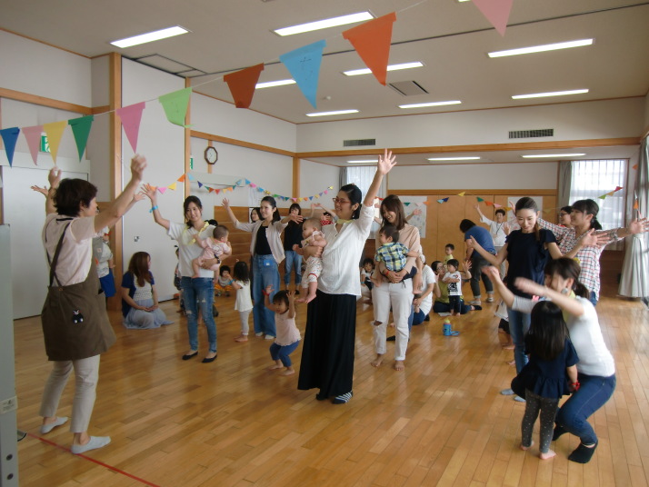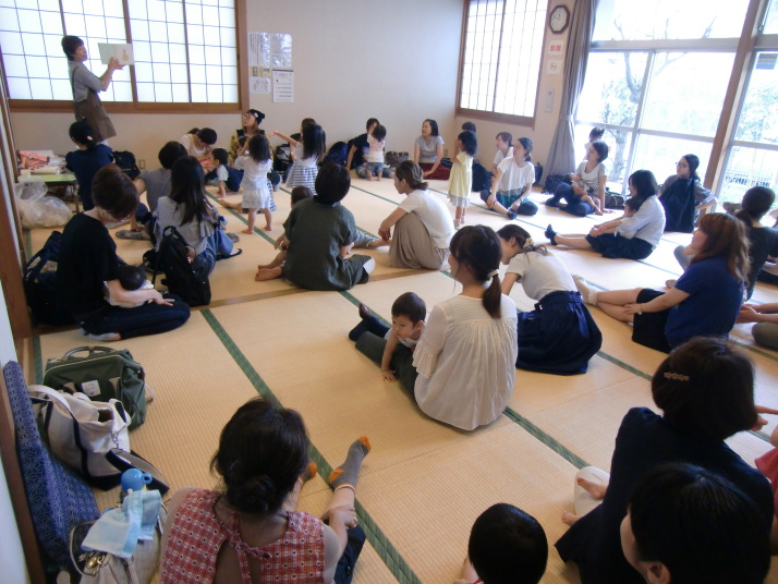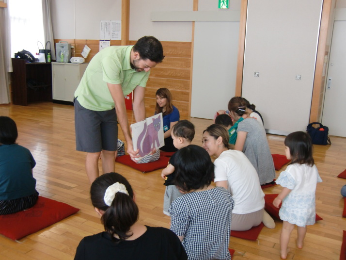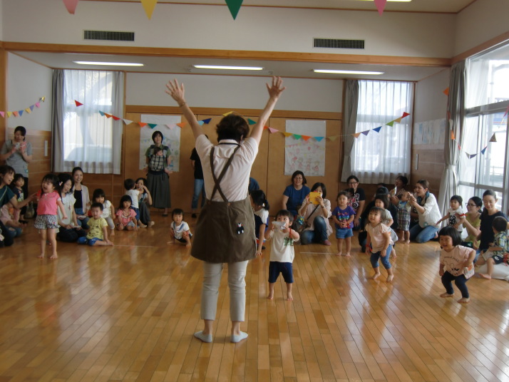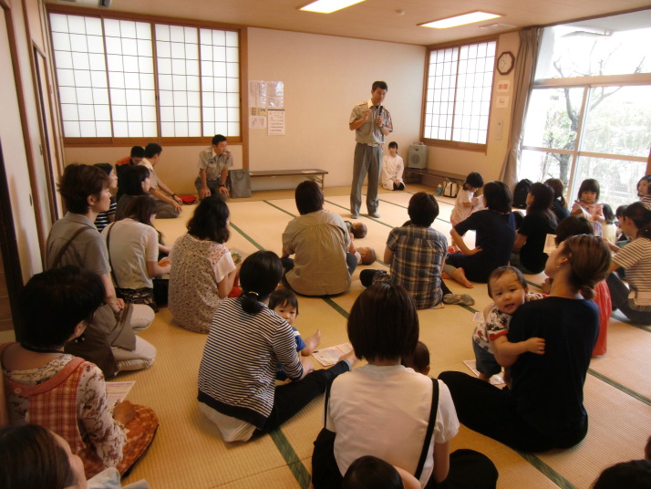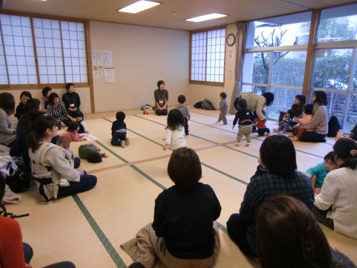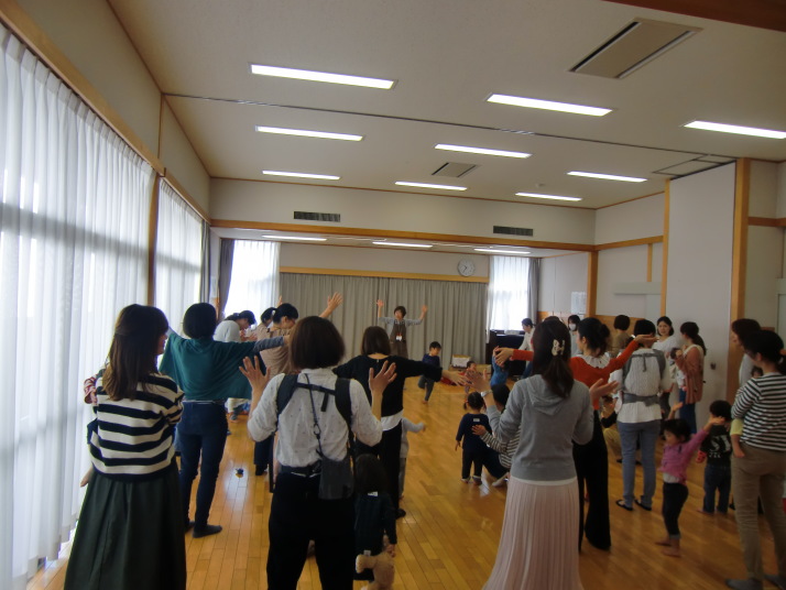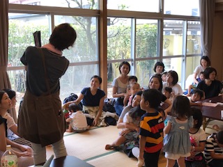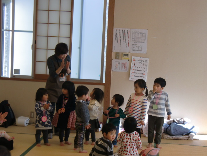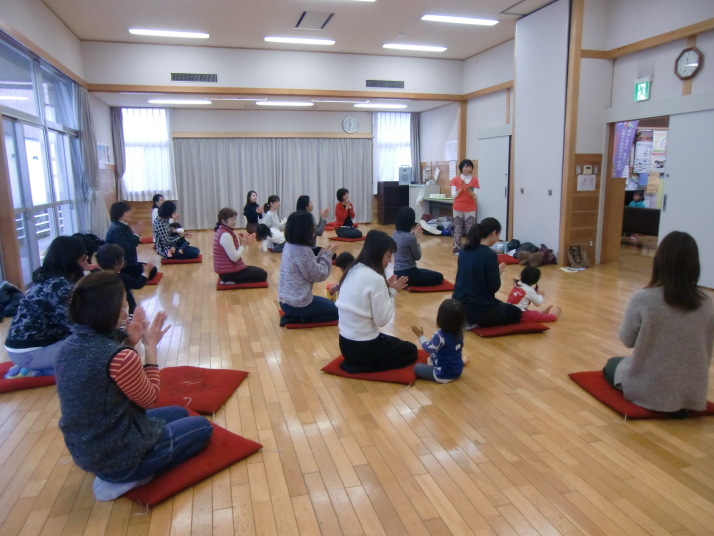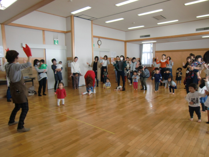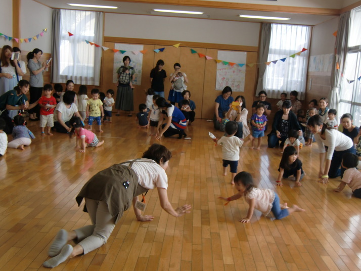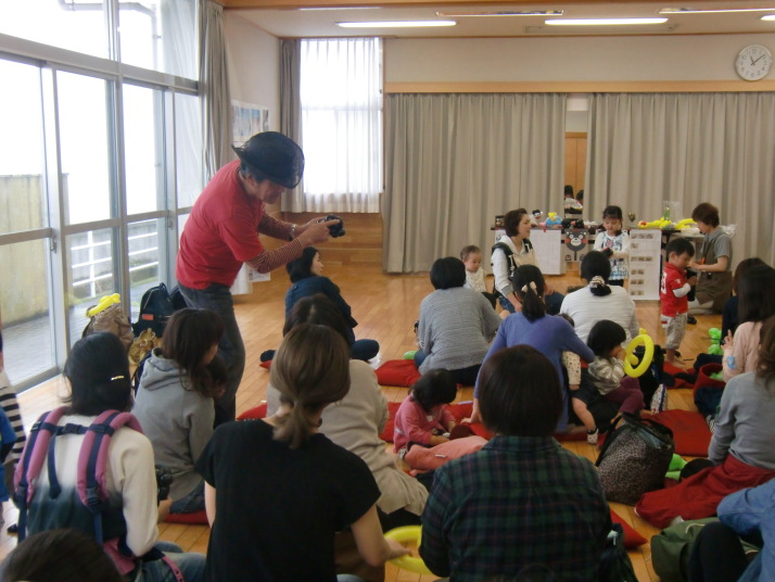 紙芝居や絵本の読み聞かせを聞いたり、手遊びをしたり、みんなで自己紹介を