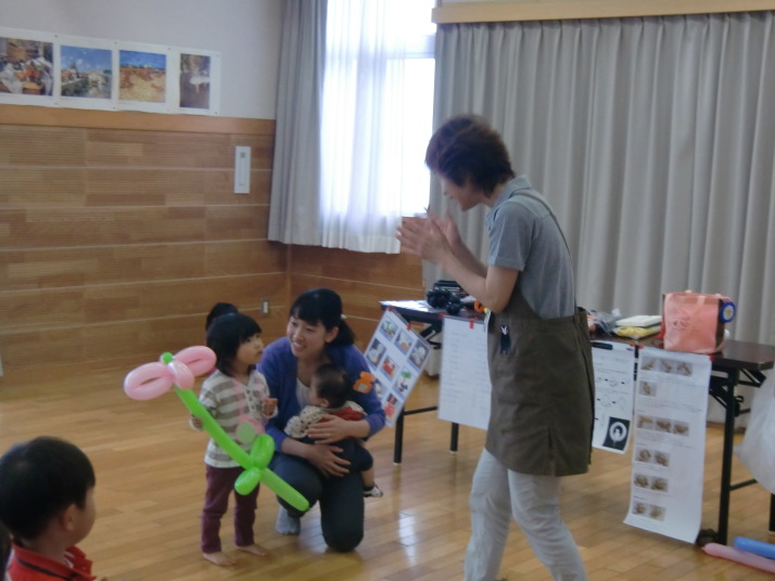 お花やぞうさんを作ってもらって、今日はお土産がたくさんで子どもたちも