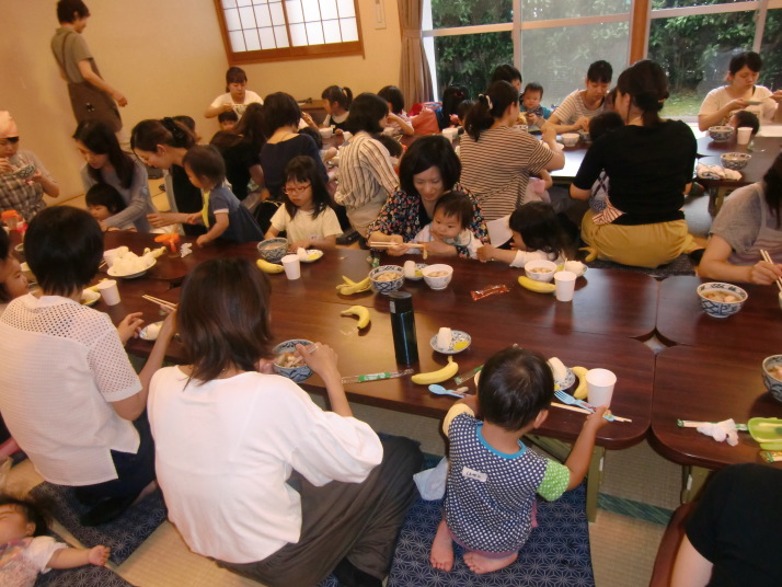 皆で美味しく、だご汁、おにぎり、バナナを食べてお腹いっぱいになりました。