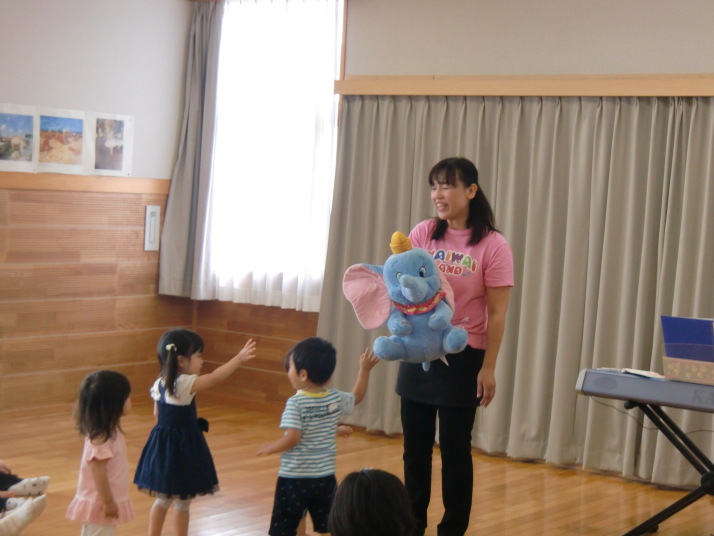 体を使って英語に親しむ事ができ、子ども達は笑顔いっぱいでした。