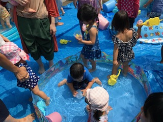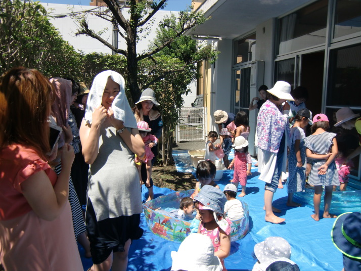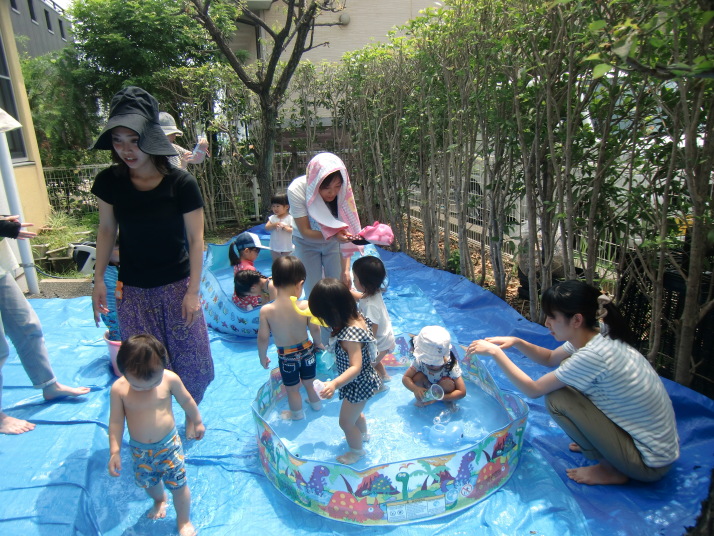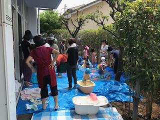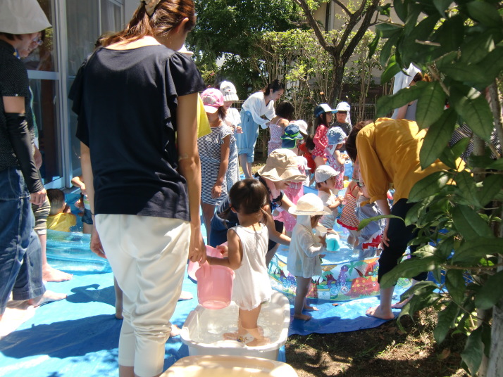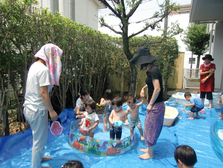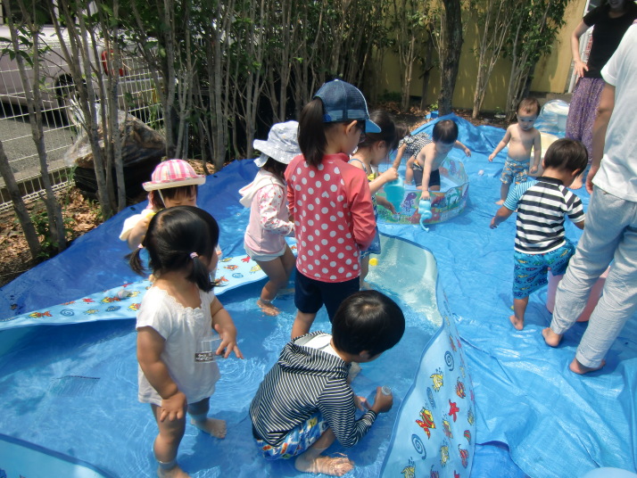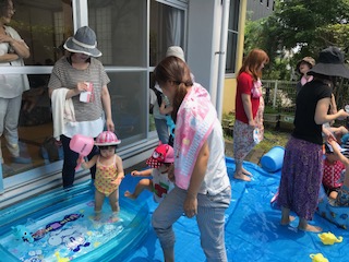 今日はお話し会と水遊びをしました。