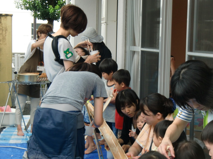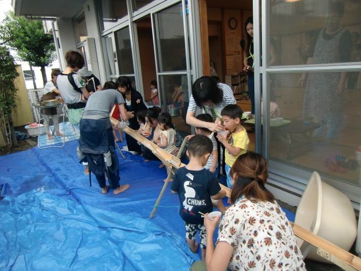 その後、そうめん流しを楽しみました。