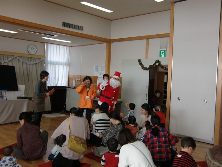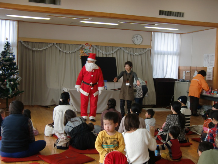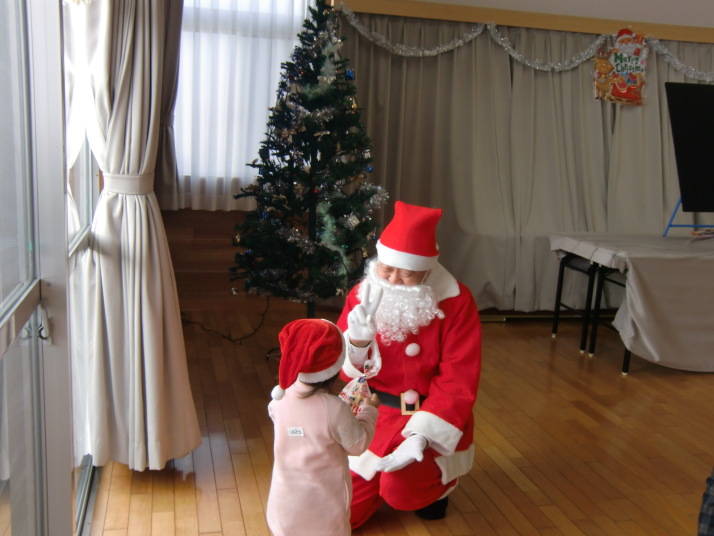 楽しい歌や読み聞かせの後、サンタさんが登場 ‼ 一人一人プレゼントをもらいました。