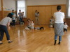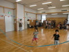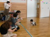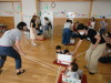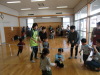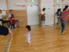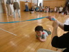 親子遊びを教えていただき、その後はトランポリンやマット、鉄棒などを体験し、親子で楽しい