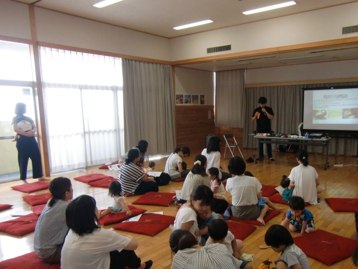 子ども達も興味津々でした。英語は2~3歳から始めると良いそうです。
