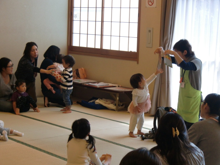 小さい赤ちゃんが多く、触れ合い遊びを喜んでいました。
