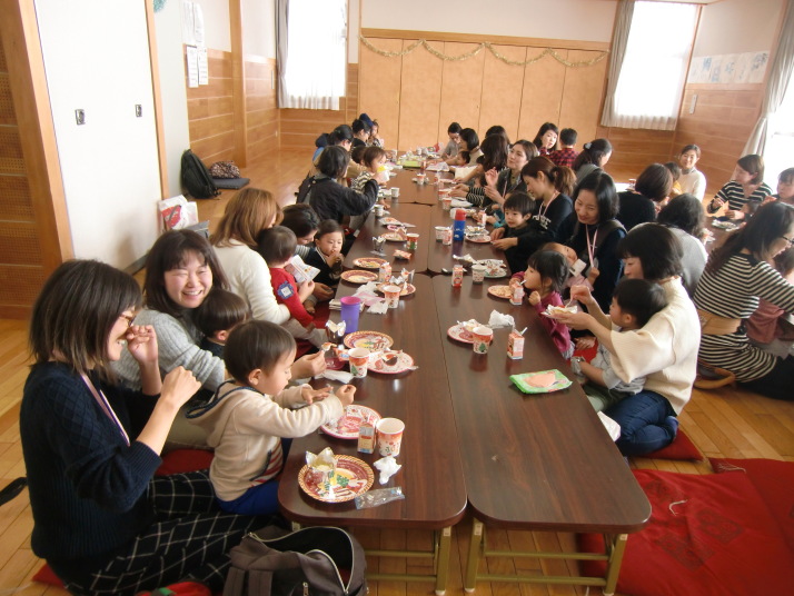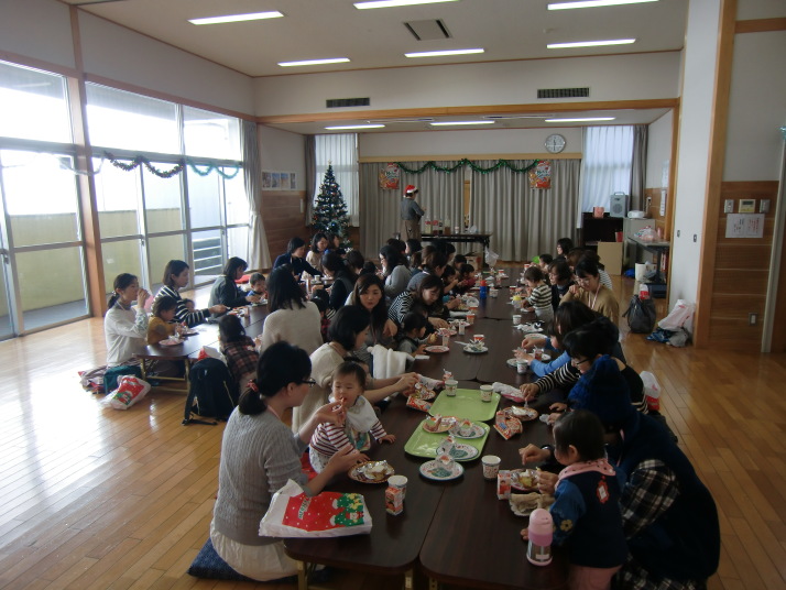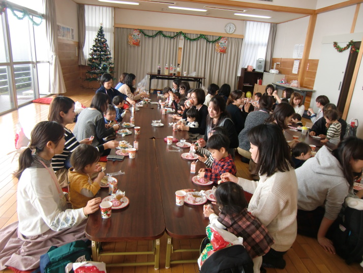 プレゼントをもらい、子ども達も大喜びでした。最後にケーキやジュースをいただき、とても楽しい