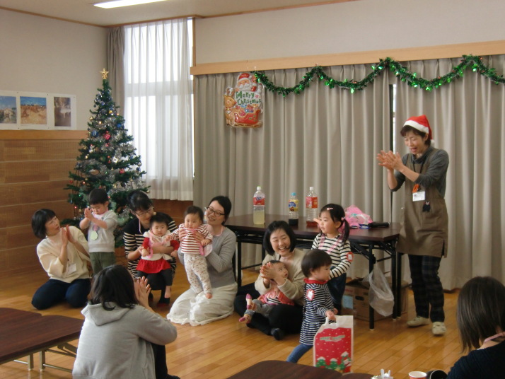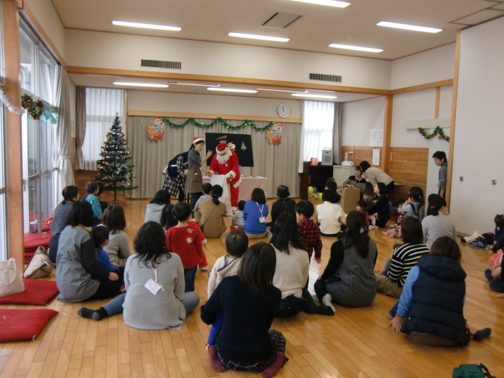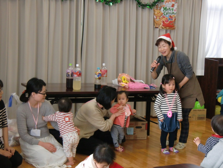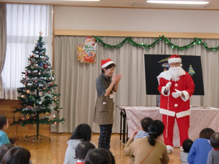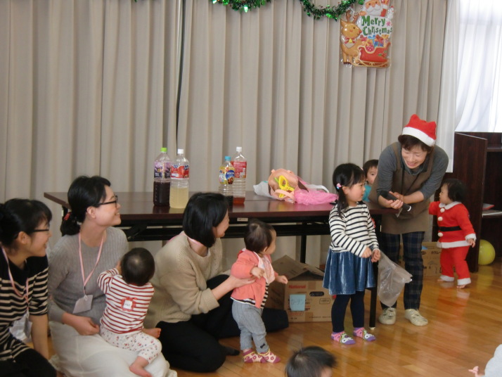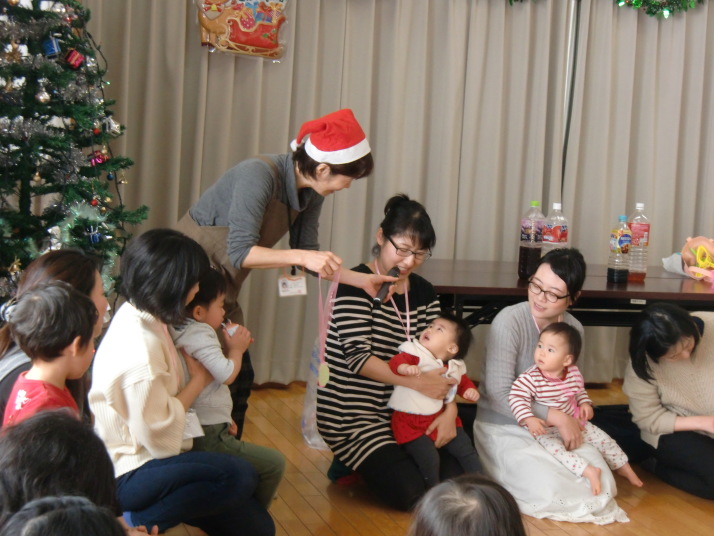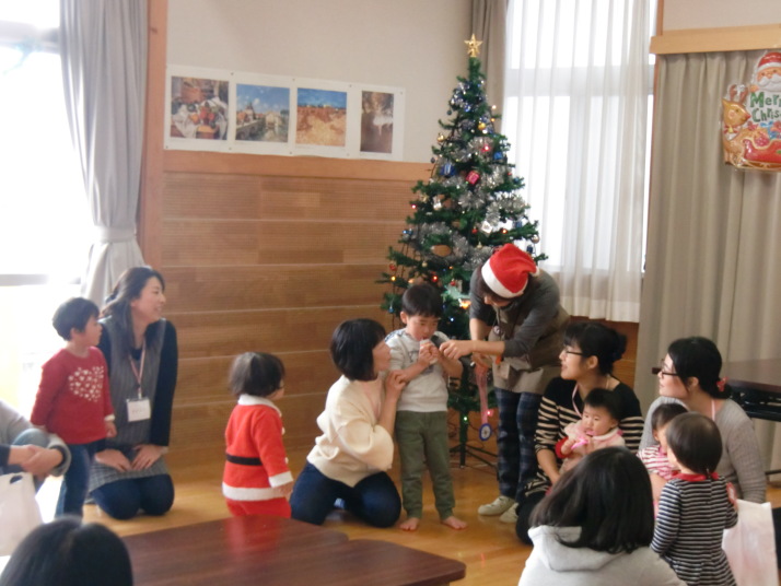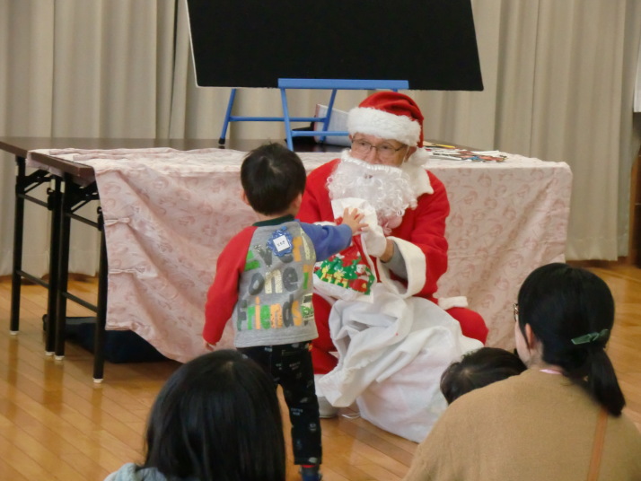 今日はクリスマス会がありました。楽しいゲームやパネルシアターの後にサンタさんから一人ずつ