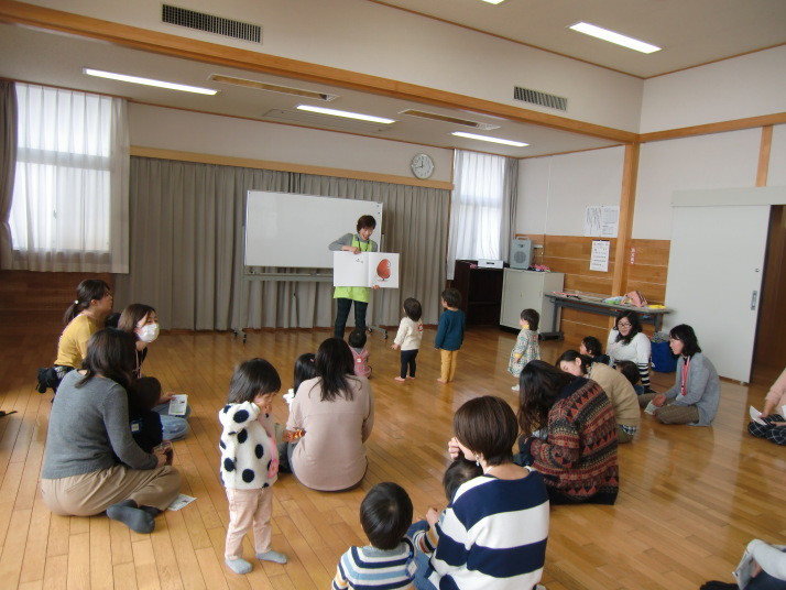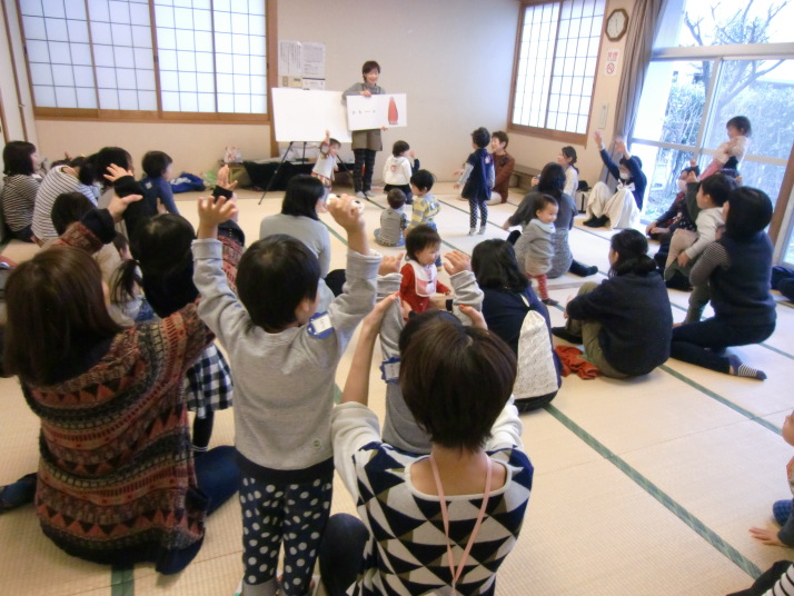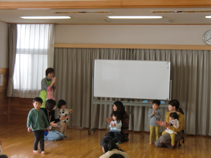 最後の会。手遊びうたやお話など楽しく参加する我が子に1年間の成長を感じるとともに、