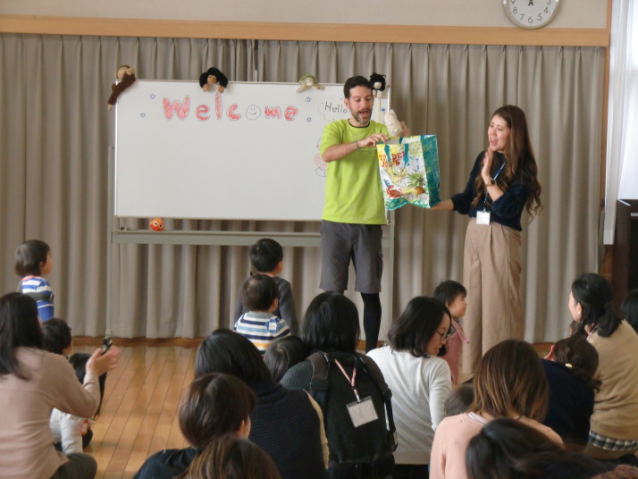 本日は身体測定をし、英語の先生と一緒に五感を使い、親子で楽しい時間を過ごしました。